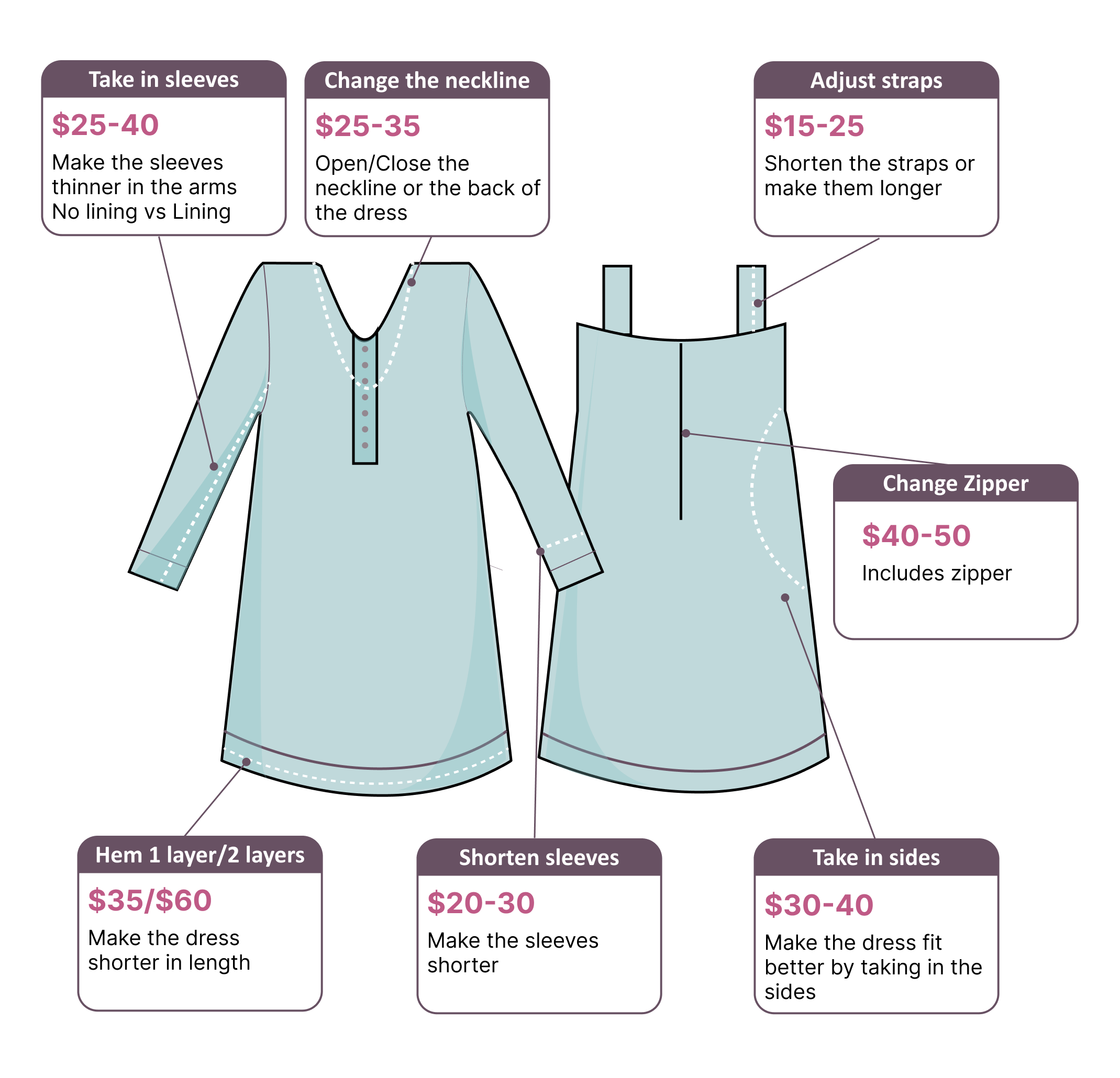 Casual dresses deserve expert attention, and our dress professionals ensure each garment fits perfectly, blending comfort with style. From taking in baggy sleeves to altering dress lengths, our alteration specialists understand the unique requirements of casual wear. We take pride in providing high-quality service at accessible, competitive prices to make every alteration affordable.