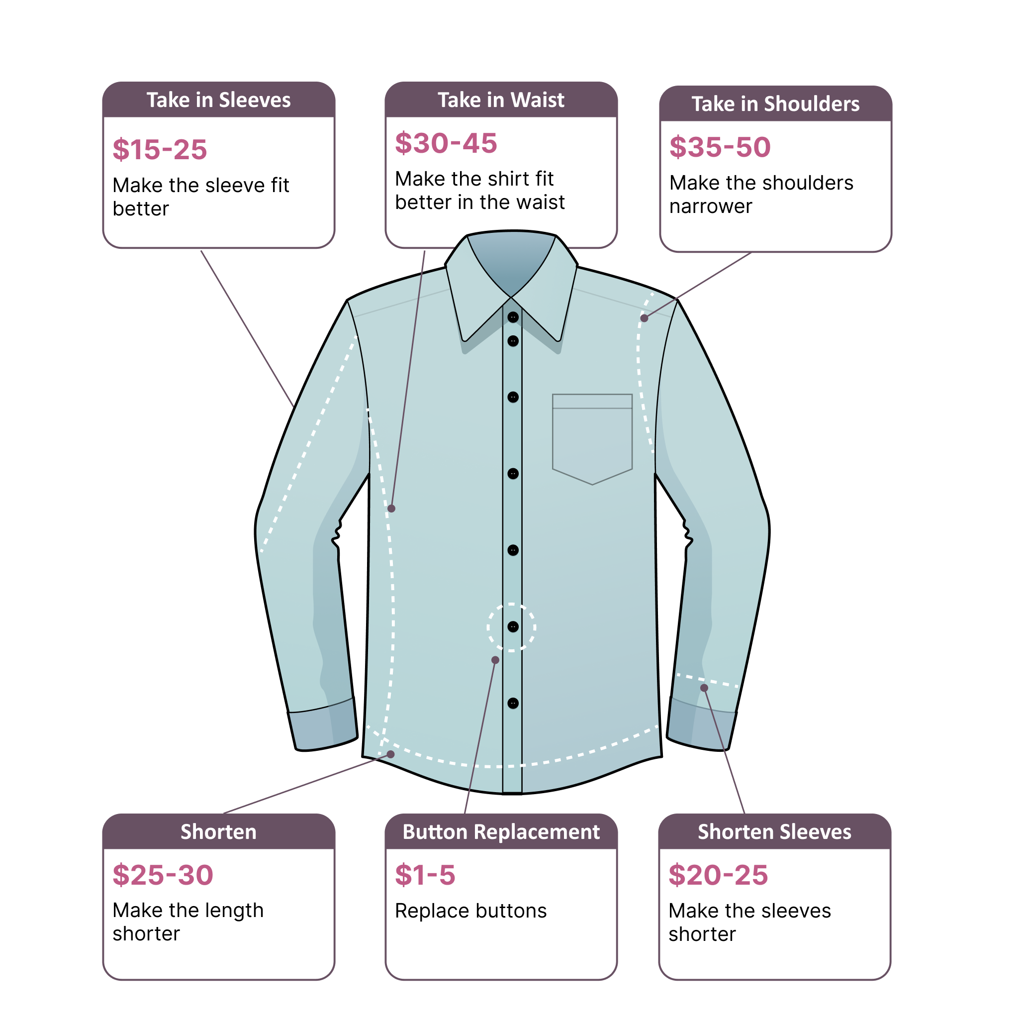 Our experienced tailors focus on preserving the original fabric during alterations, ensuring that the design elements and quality of the shirt remain unchanged.